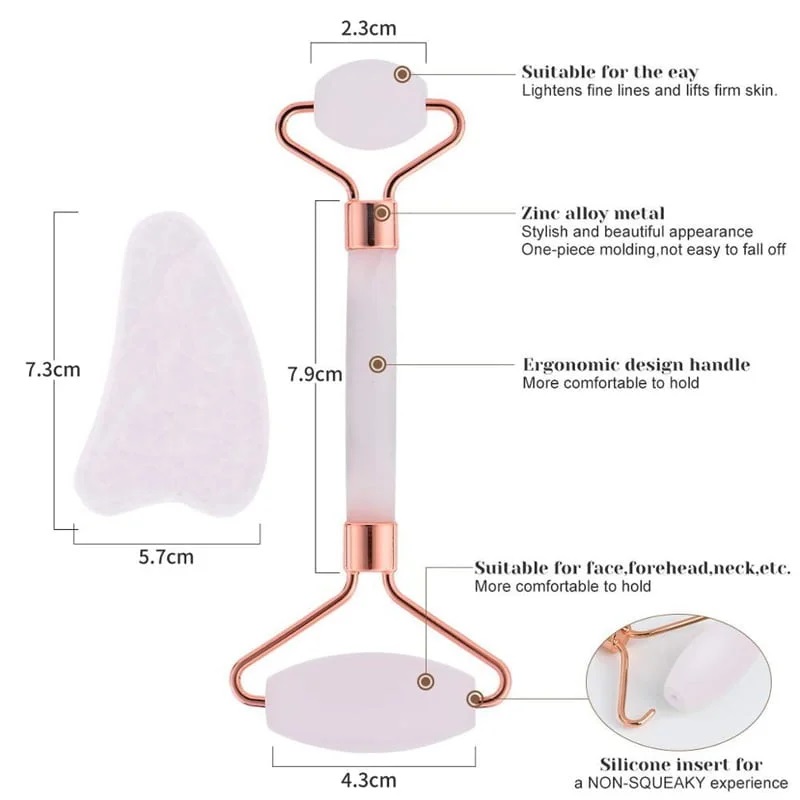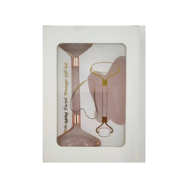 Πρόκειται για ένα ρόλερ προσώπου και μία πέτρα μασάζ από ροζ χαλαζία που αποτελούν την ιδανική λύση για ανάπλαση, τόνωση και λείανση της επιδερμίδας.